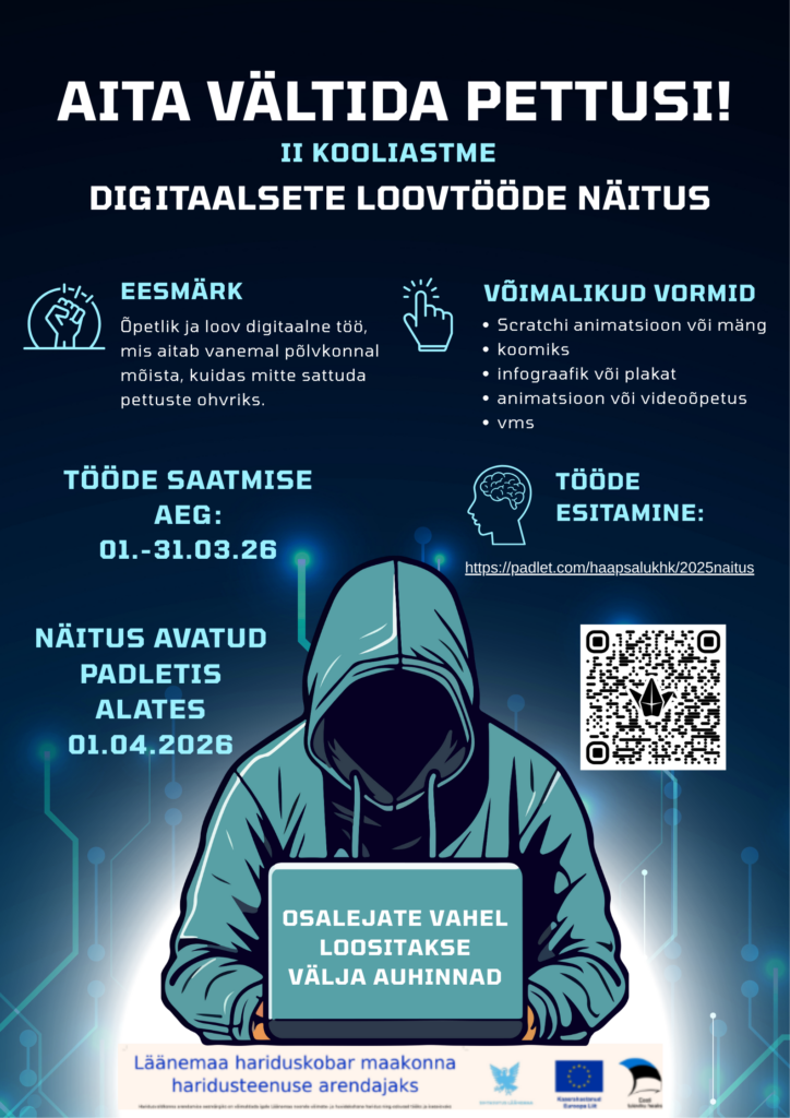 Läänemaa hariduskobara digimentorid tegid sel õppeaastal üleskutse Läänemaa koolide II kooliastme õpilastele osaleda digitaalsete loovtööde näitusel “Aita vältida pettusi!”